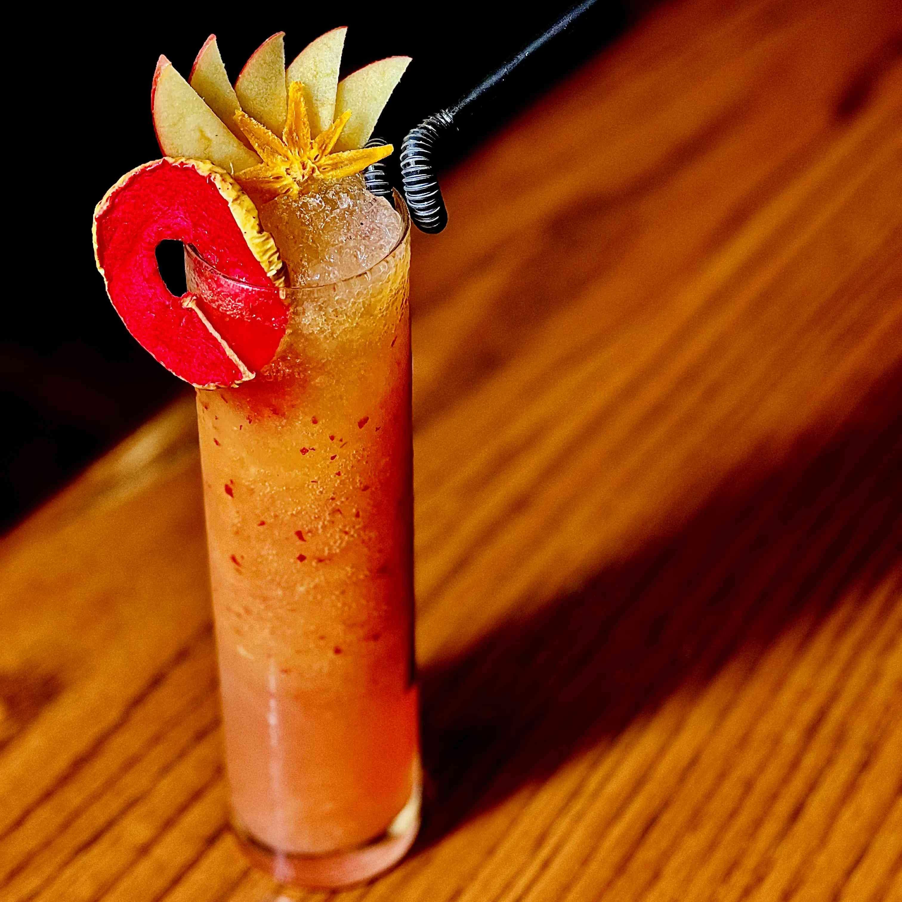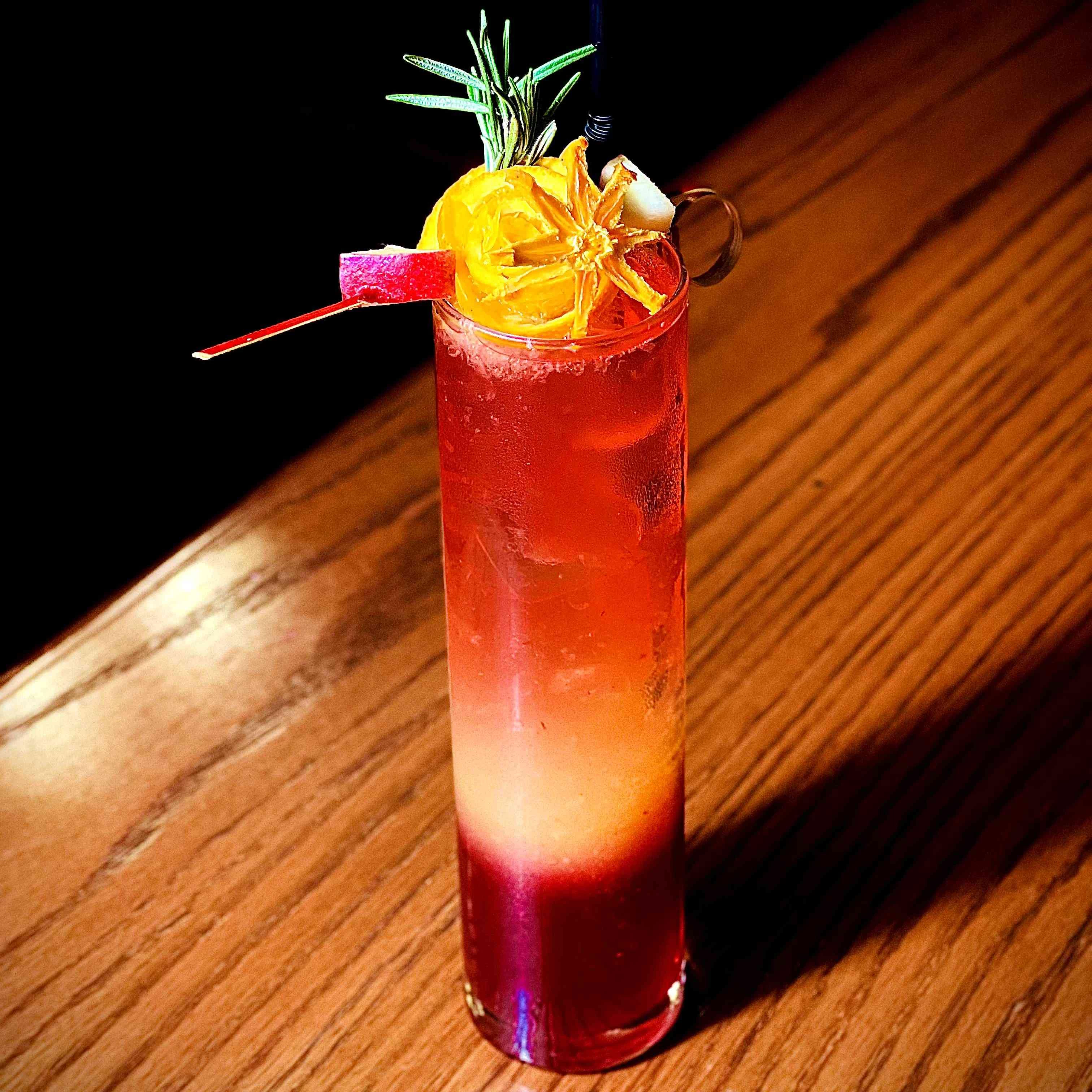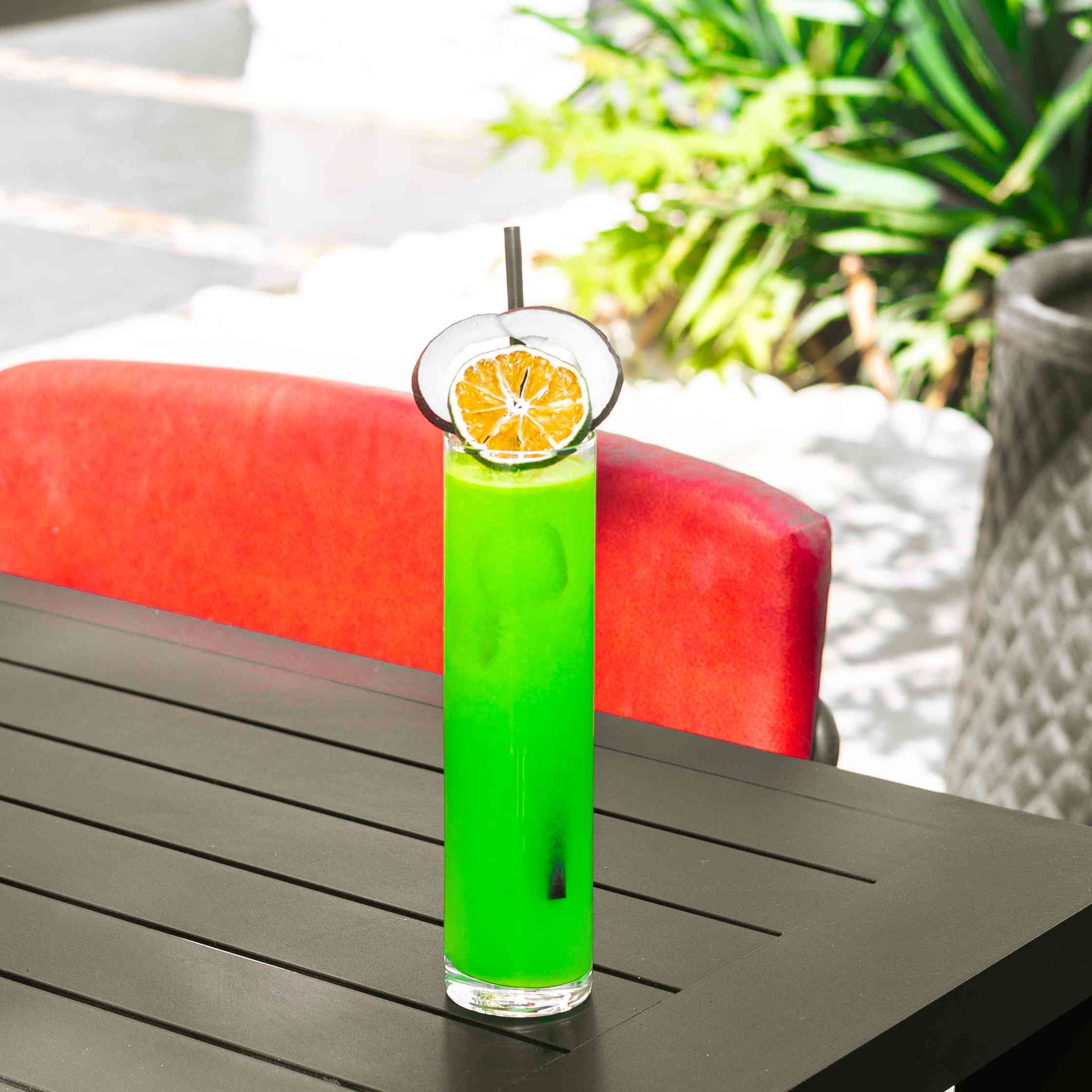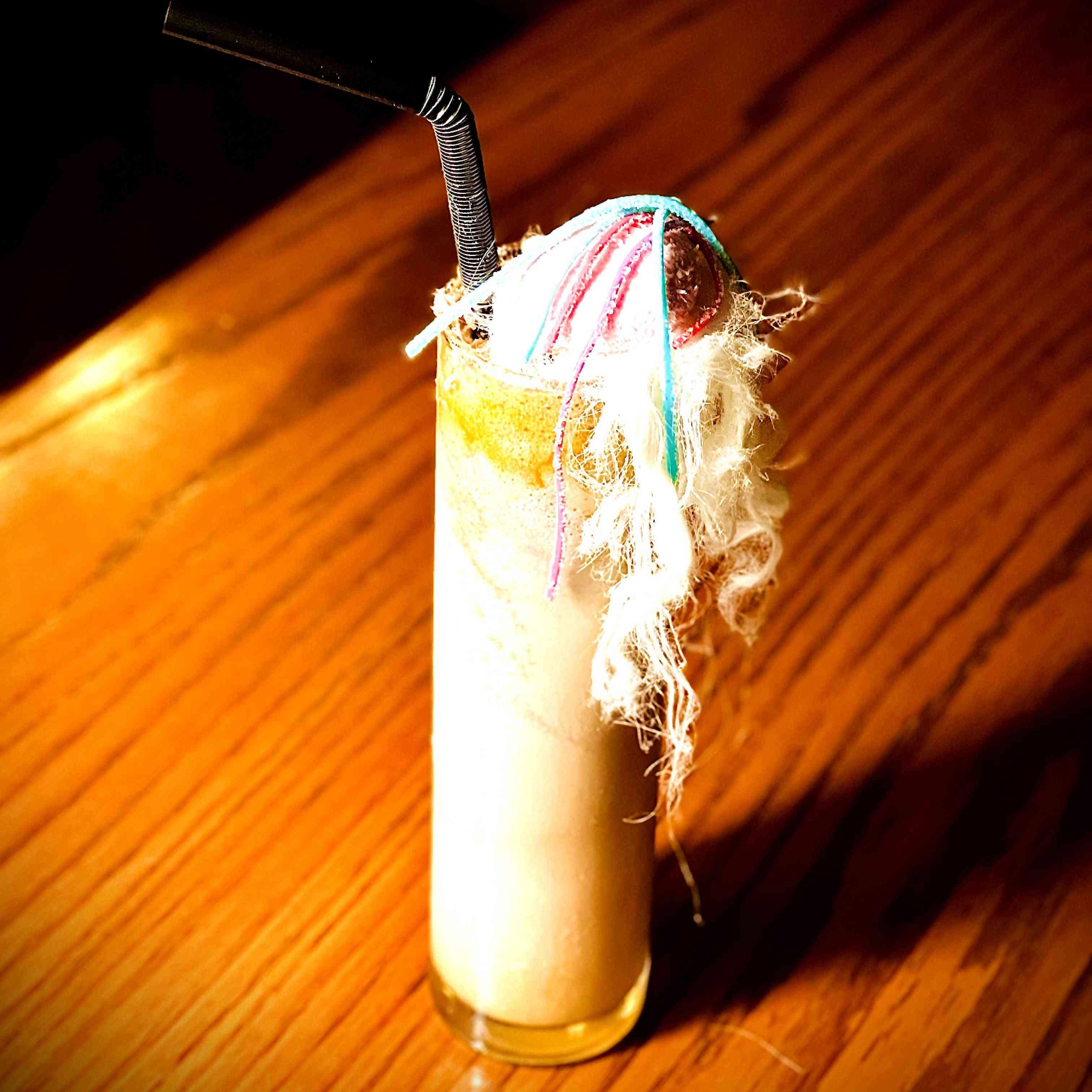 Coconut syrup + orange juice + blue caracasau + pina colada