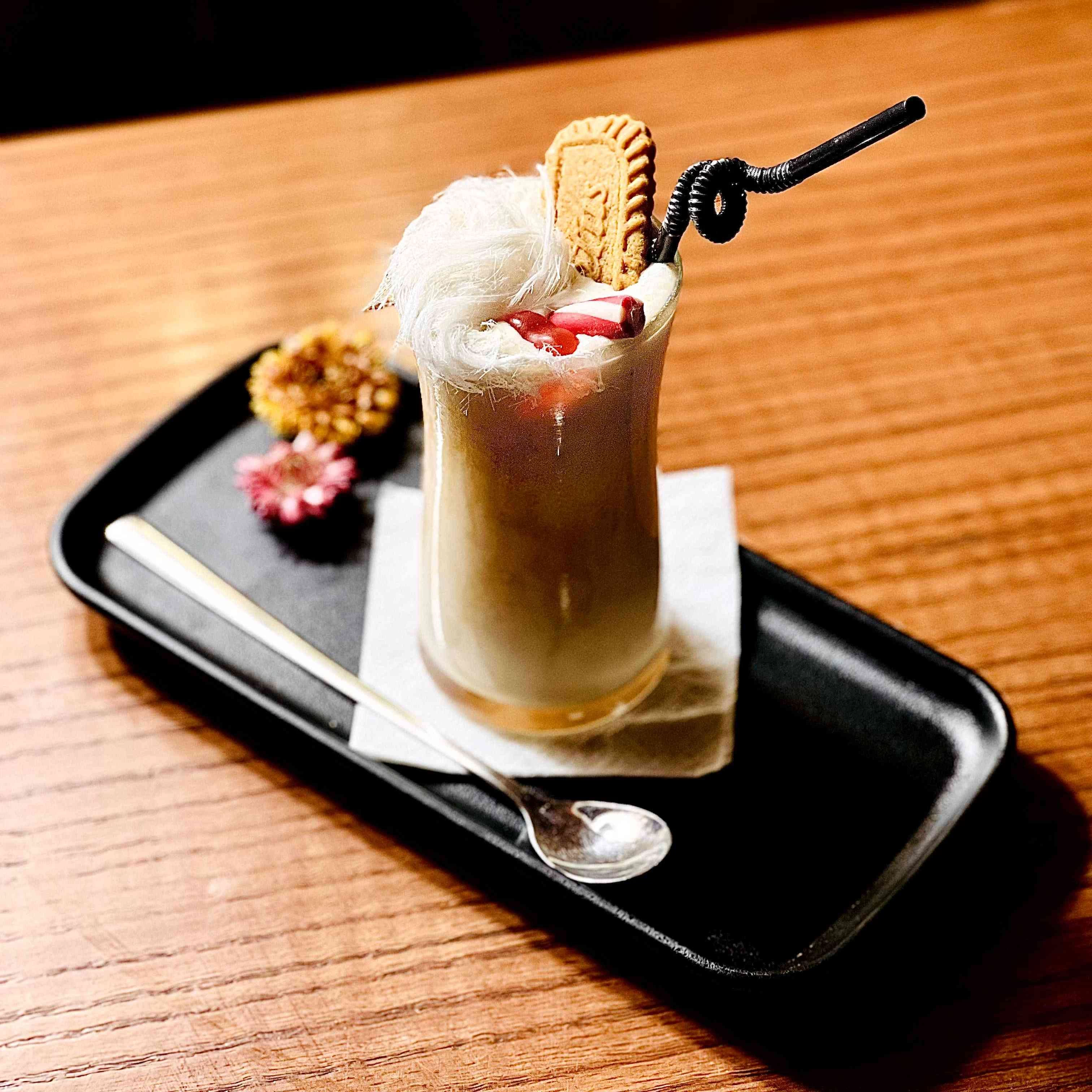 Espresso + coconut milk + hazelnut syrup + ice